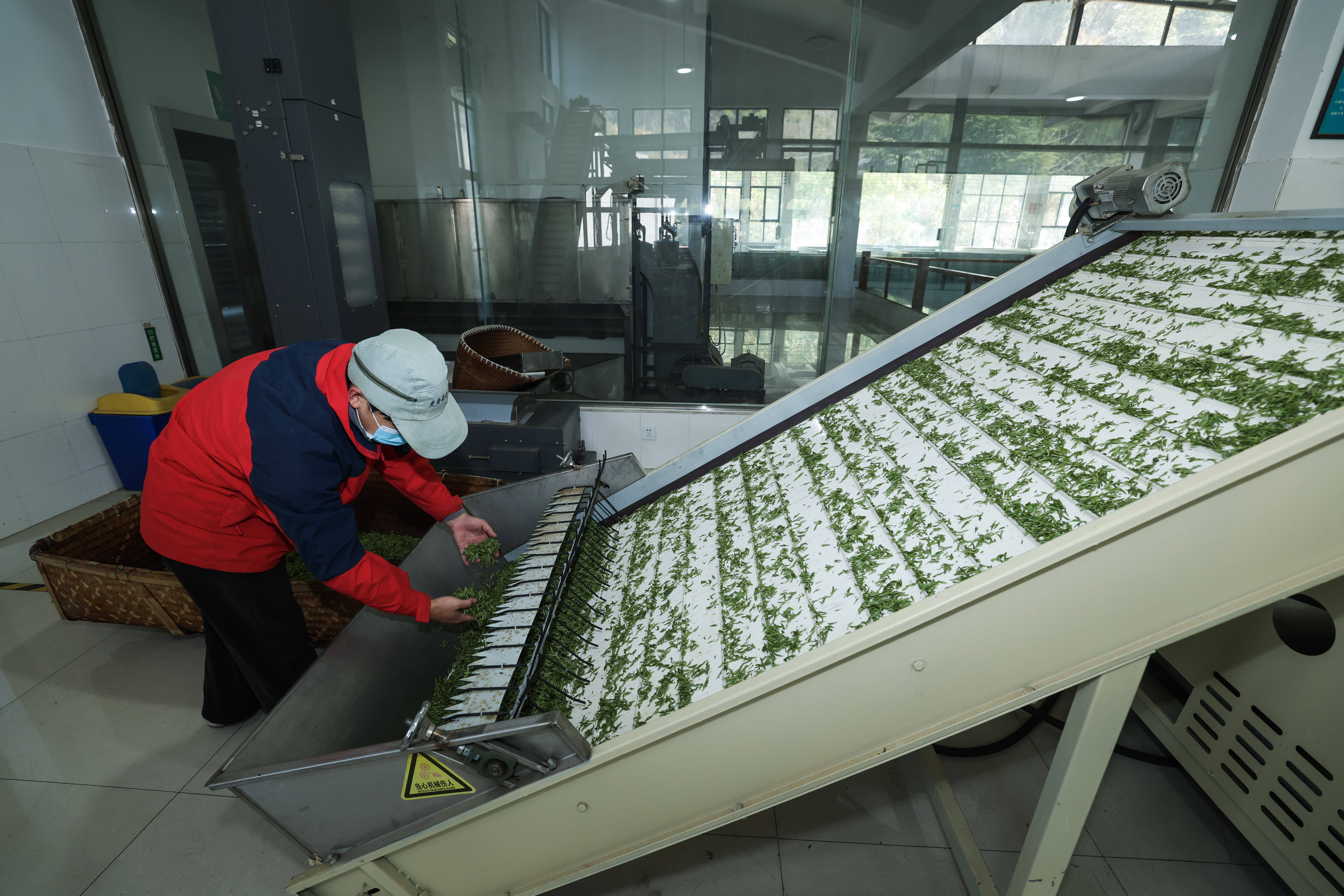 3月10日,在浙江省武义县更香有机茶业开导有限公司的分娩车间内,自动化活水线正在加工首批春茶。新华社记者徐昱 摄产业的茂盛径直惠及千门万户,当地茶农东说念主均可欺诈收入已有计划多年保执两位数增长,一派叶子真确成了富民强县的“金叶子”。