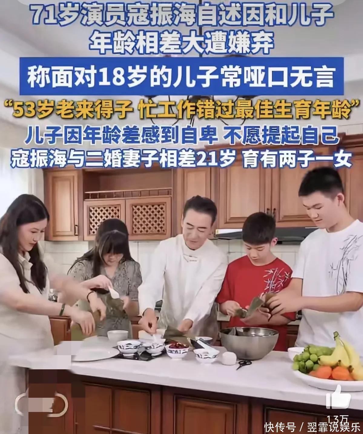 那里71岁的寇振海发布长文自述“老来得子”的心情,文中写到:“孩子出身那年,我五十三岁。老来得子,本是天大的喜事,可我当时正赶上一部大戏的拍摄,在外地一待便是半年。”错过了孩子的成长久。