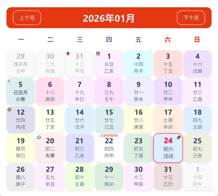 老历本看日子生肖运势查询(2026年1月24日)