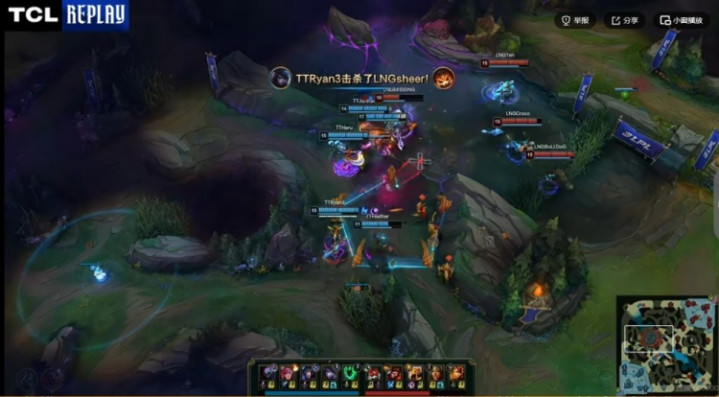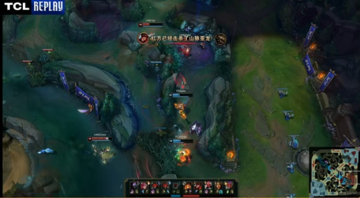 [21:11]中路双方一波交手最终是接济互换,然而LNG抱团拆掉了TT的中路一塔!