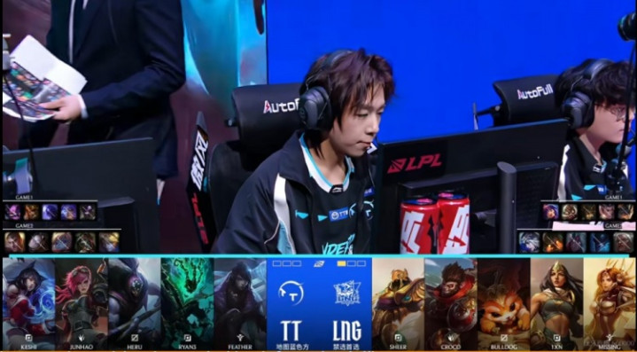 TT:上单Keshi、打野Junhao、中单Heru、下路Ryan3、接济Feather