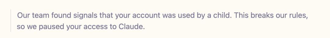 Anthropic发给他的邮件写得很直白:检测到你的账户被儿童使用,违背了咱们的规,封了。