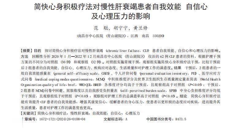 参考而已[1]范 聪,南昌市中心病院开云体育,简快心身积极疗法对慢性肝穷乏患者自我效率 自信心及激情压力的影响,2024-09